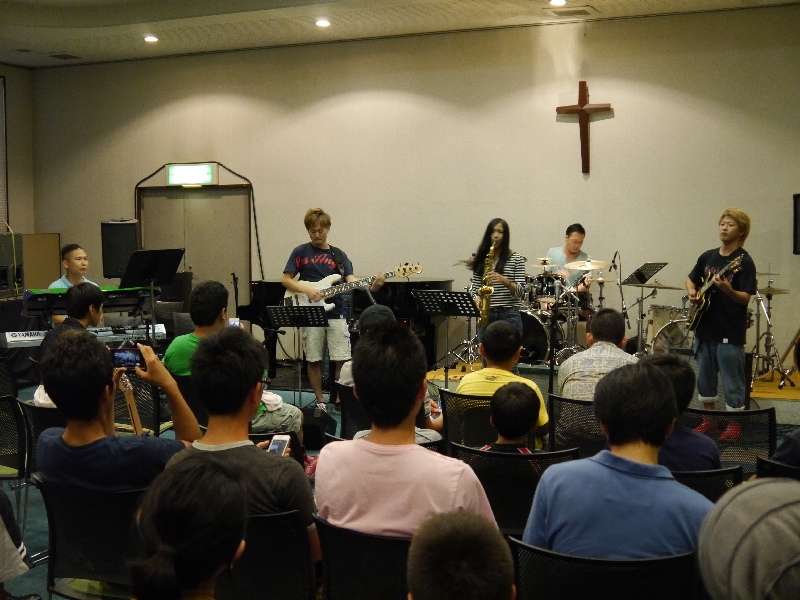 SPMS夏のイベントが8日、9日にかけて行われました。子どもから大人まで、音楽好きのメンバーが30名ほど集い、4つのバンドに分かれて、滝元堅志・滝元寛太・上條頌・PennyKら、音楽会でもノッているミュージシャンたちから、2日間にわたりみっちり指導していただきました。途中には流しそうめんやスイカ割りなどの楽しい交わりの時も持ちました。最後の時間では、練習の成果を発表する時がもたれ、各チーム様々な特色のある演奏を披露することができました。また、講師陣によるミニライブもあり、翌日のThe Call音楽の夜に出演される、前田沙羅さんも駆けつけて、特別演奏してくださり、みんなとてもハッピーになる素晴らしいときでした。